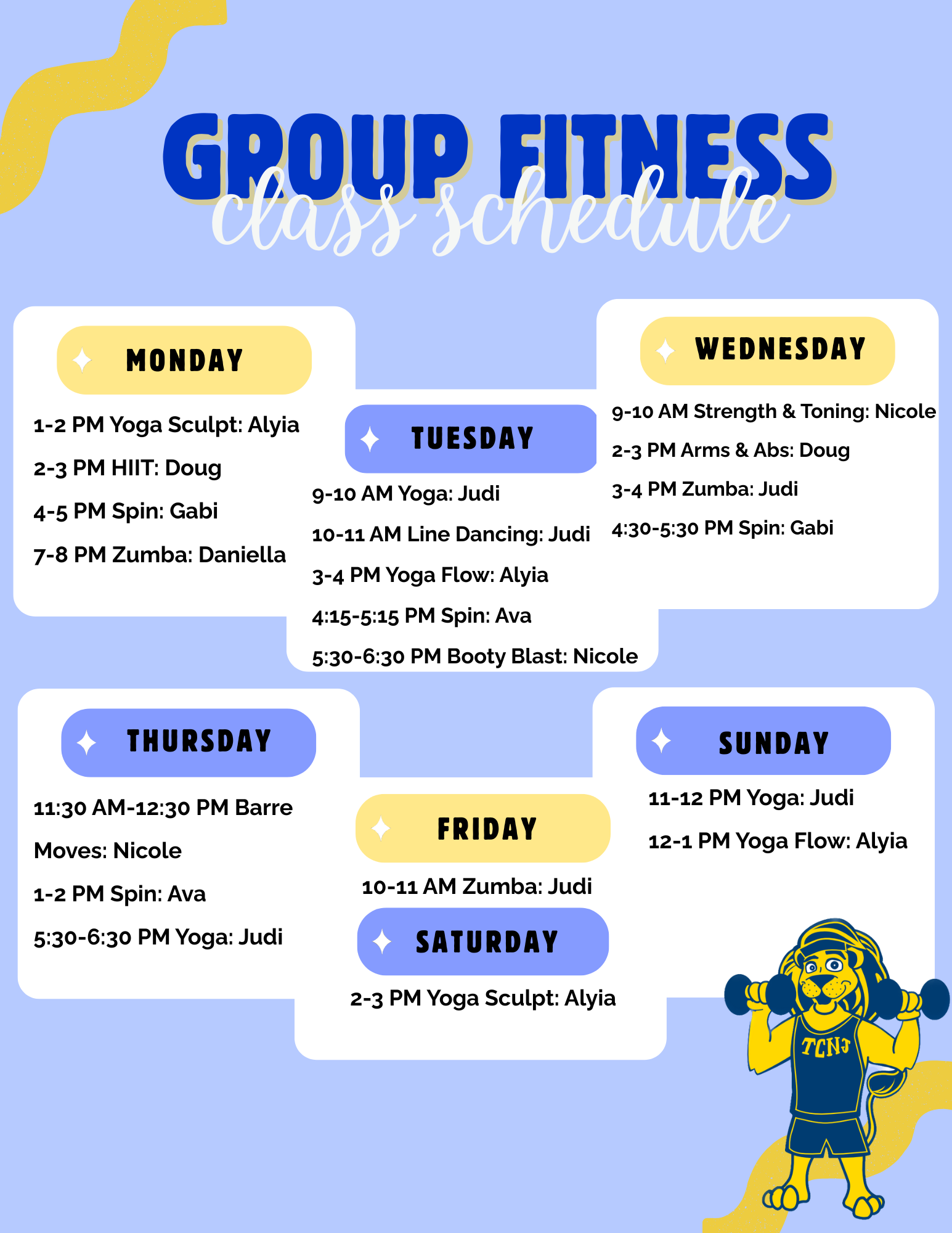 This Fall 2025 semester, some of our group fitness classes are going to be taught by instructors from SimplyFit (https://www.simplyfitnow.